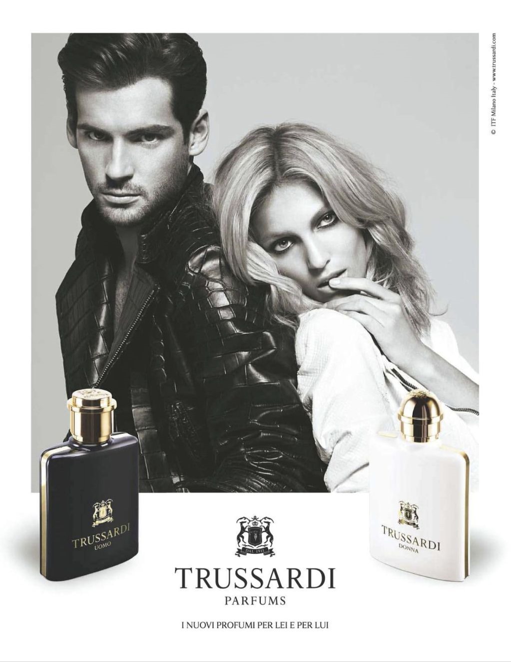 В 2011 году Trussardi отметил свой 100-летний юбилей. В ознаменование столетия усердной работы было решено выпустить новые ароматы – Trussardi Donna и Trussardi Uomo. Хотя это абсолютно оригинальные ароматы, они напоминают нам о самых первых ароматах Trussardi, выпущенных в 1980-е годы. Новый женский аромат Trussardi Donna выразил современную харизматичную женственность, исполненную сияния красоты и чувственности, очарования и роскоши. Флакон и упаковка сияют роскошной белизной.